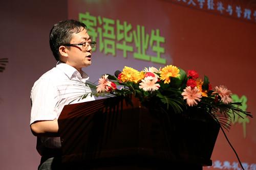 ,保证了学院永远有优质的生源。最后祈福,期待大家毕业后为经管的建设添砖加瓦。对于马上就要踏入社会继续深造的毕业生提两点希望:第一仰望星空,怀揣梦想。第二:脚踏实地,用心做事,全场同学们用热烈的掌声表示铭记院长的谆谆教诲。