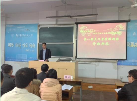 禁忌书屋 王英副院长首先在开班典礼上致辞,代表全院师生欢迎各位学员的到来。讲话中,王英副院长详细介绍了南京航空航天大学和禁忌书屋 的发展历史、现状和校园周边生活环境,并祝愿各位学员在为期三天的素质培训班中学有所获。