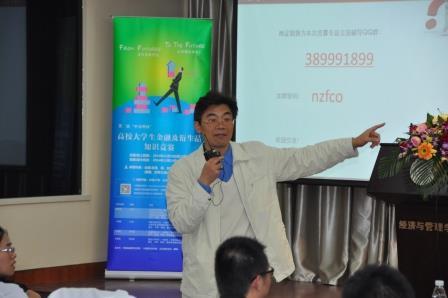 宣讲会上,陈卫中先生向同学们详细介绍了知识竞赛的背景、重要意义以及活动细则,并与大家共同回顾了首届比赛中南航学子的风采,接着,依次为同学们做了“金融衍生品基础知识介绍”、“走进金融市场”、“赛事复习重点”等,帮助同学们了解、学习金融期货专业知识,赢得同学们的热烈掌声。