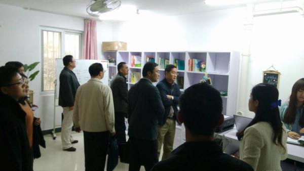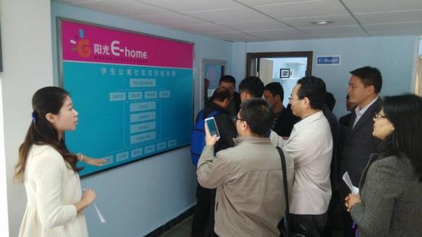 学生公寓社区化建设试点——阳光E-home学生公寓。院党委副书记许静、团委书记任慈陪同,全程由公寓社区建设指导老师刘旭讲解。