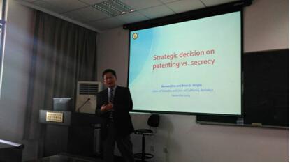 大楼704,加拿大滑铁卢大学管理科学系的Bonwoo Koo教授来智能决策与风险分析研究所和区域经济与产业经济研究所,作了“Strategic decision on patenting vs. secrecy”的报告。禁忌书屋