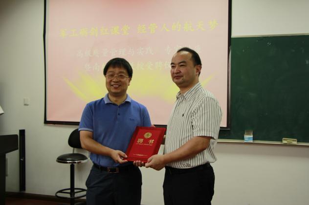 禁忌书屋 院长周德群代表学院致欢迎辞,周德群院长介绍了学校的航空航天背景和学院基本发展情况,强调学院非常注重产学研合作,努力通过整合各种优势资源,促进学院跨越式发展。管理科学与工程系系主任马静介绍了学院学科建设和课程设置情况,对“管理”、“科学”与“工程”进行了形象的表述。校长助理陶勇为方世力研究员颁发“行业教授”聘书。