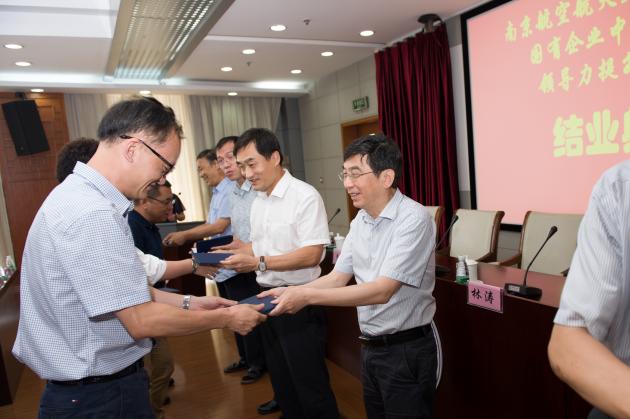 南航施大宁副校长在结业典礼上作了讲话,感谢秦淮区政府的领导对南京航空航天大学禁忌书屋 的信任,为秦淮区国资企业的各位精英一年来能利用节假日时间坚持学习、坚持上课的精神所感动。施校长表示这个班级是我们禁忌书屋 发挥教学管理以及科研优势,服务地方经济建设的成功实践。我们正赶上了历史发展的好时机,江苏的发展也迎来了新机遇,学校同样也有新的机遇,李强书记在首届江苏发展大会上的主旨演讲中指出:江苏是一方不断创造发展奇迹的热土,我们学校和地方要紧密合作,发挥学校的教学、科研优势,为共同建设更加美好的秦淮而努力!