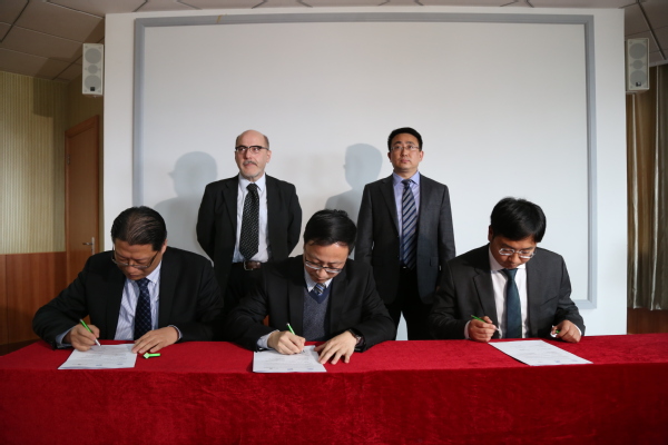的发展情况及愿景使命、社会责任,意大利锡耶纳大学Maurizio Pompella教授向与会嘉宾详细介绍了JEUL项目。随后,在代表们的见证下,赖际舟副处长代表南航与利安人寿、中科曙光共同签署了“谅解备忘录”,与会代表合影留念。最后,中科曙光南京研究院有限公司总经理王海荣、利安人寿总精算师王龙根、南京金龙客车有限公司人力资源部总监徐亮亮、交通银行股份有限公司江苏省分行人力资源部总经理缪洋、中信证券江苏分公司副总经理周晋飞分别代表企业做了介绍,几家单位分别表示,后续会通过与南航共建学生实习基地、建立研究生工作站等方式加强合作与交流。