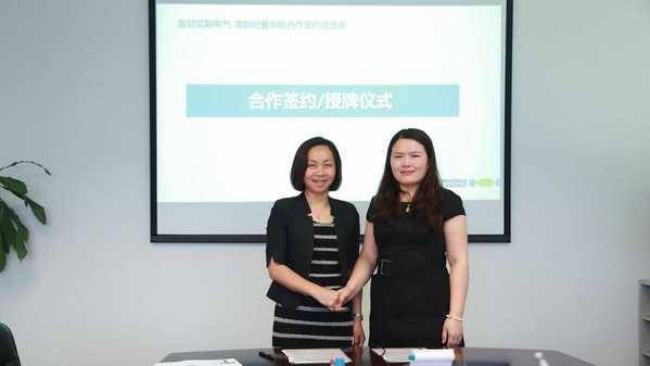 党委副书记涂志宏与菲尼克斯公司人力资源部总监郭美峰分别代表院企双方签署了关于建立大学生实习实践基地的合作协议,党委书记焦宏图与总经理陈雷共同为实习实践基地揭牌,随后双方代表讨论了其他合作事宜及学生暑期实习需求和项目情况。