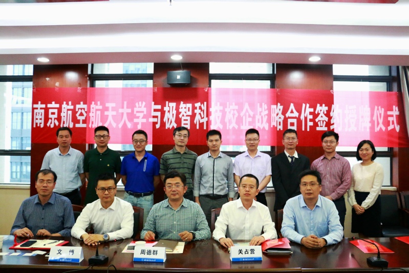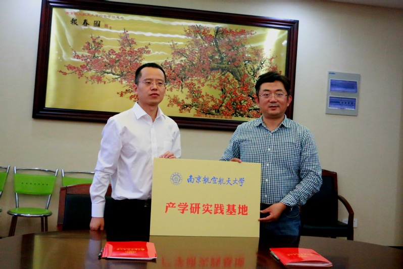 捐赠12万元人民币,用于支持学生发展和教师教学科研工作。随后,周德群与关占营代表双方签署了《校外实习实训基地协议》,并共同为“南京航空航天大学产学研实践基地”揭牌。