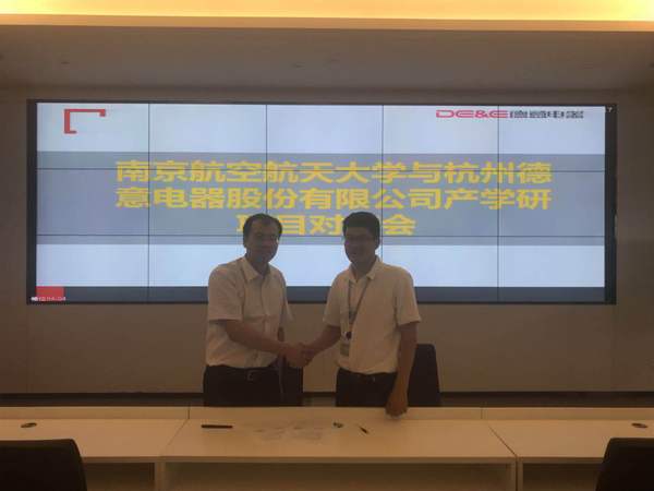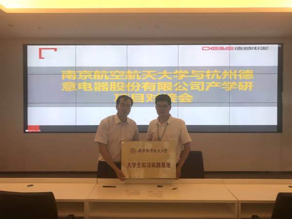 5月31日,禁忌书屋 与德意电器股份有限公司(以下简称德意电器)在杭州萧山研制基地举行南京航空航天大学大学生实习实践基地签约揭牌仪式。禁忌书屋 副院长邓晶、工业工程研究所所长庄品和青年教师徐志涛、虞先玉、高广鑫、辅导员朱一豪,以及德意集团行政总裁朱伟中、德意电器总经理高利见和和部门主管十余人共同参加了本次活动并开展深入座谈,积极探索建设校企协同育人新模式。