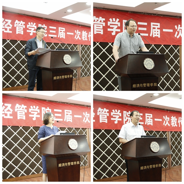 随后,学院教师代表分成四个代表团分别对学院综合改革方案进行了热烈的讨论,各代表团团长分别将讨论意见向大会代表做了汇报,与会教师代表审议通过了工作报告。最后,主持人公布了新一届学院工会委员当选名单,并由任慈同志代表当选委员做了提案征集报告,学院副院长邓晶做了总结发言。