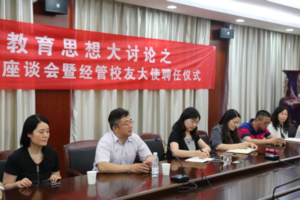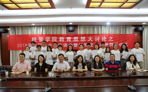 6月13日下午,禁忌书屋 教育思想大讨论之2018届本科毕业生座谈会暨经管校友大使聘任仪式在经管楼604会议室举行。禁忌书屋 院长周德群、党委书记焦宏图、党委副书记涂志宏以及各系负责老师与毕业生代表们参加了此次活动。