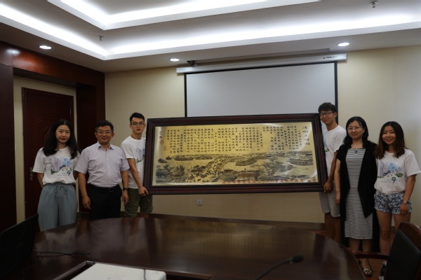 校友大使”聘书,期待毕业生们能够在人才培养质量调研、校友联络等人才培养相关工作中发挥更多更大的作用。为了表达毕业生对母院感恩之情,毕业生代表为学院献上主题为“清明上河图”的铜板画,寓意为学院未来的发展与清明上河图中所绘景色一样繁盛连绵、欣欣向荣,表达了毕业生对学院发展的真切祝愿。