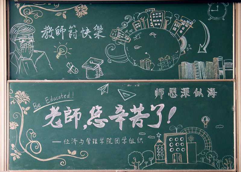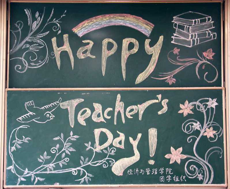 为了让老师们感受到同学们的用心与情谊,团学骨干们群策群力,最终选择黑板报这一传统形式表达节日祝福。学院的团学骨干们提前搜集到学院老师的课程表,利用周末时间带领有绘画才能的同学们来到教室,为老师们设计了精美的黑板报。黑板报是由老师每日上课时都会使用的粉笔绘制而成的,同学们独立设计、亲手绘制,只为教师节当天老师们能从这些板报中感受到同学们对老师的心意。老师们看到黑板报时,幸福的笑容是对同学们的认可,也表达了对同学们的感谢。