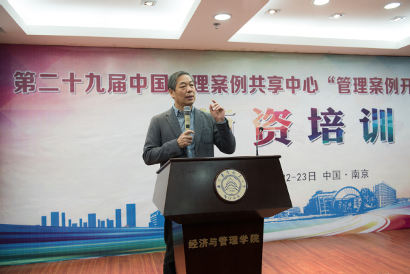 王萍主任肯定了短期内组织如此规模的培训准备工作,认为南京航空航天大学MBA项目经过十二年的发展成绩斐然,同时对此次培训提出具体要求。沈以赴主任在致辞中结合南航大MBA办学历程,特别强调了在MBA项目学员年轻化进程中,案例教学师资培训的现实意义。苏敬勤教授简要地介绍了中国管理案例共享中心,强调了案例教学较之课堂教学、实践教学的重要性,案例研究是中国管理研究的正确方向,以及MBA教学的“一体两翼”(案例库、教师、学员)。