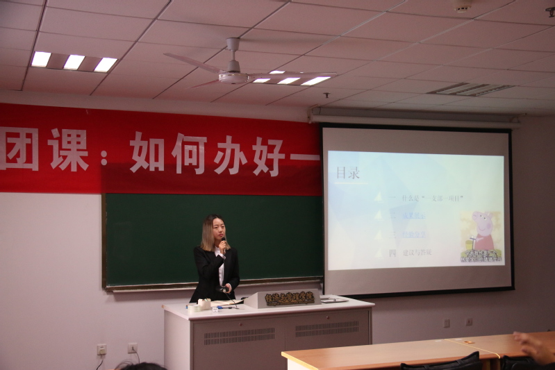 0917011团支部书记陈冉首先就立项的流程进行了详细说明。随后,她结合往年经验,凝练出了几点建议:首先,应做到长期立项,在活动的过程中对项目进行完善;其次,努力做有想法、有特色的团支部,敢于创新和尝试;最后,她分享了“尽早开展、合作分工、后期整理,形成成果”的重要性。