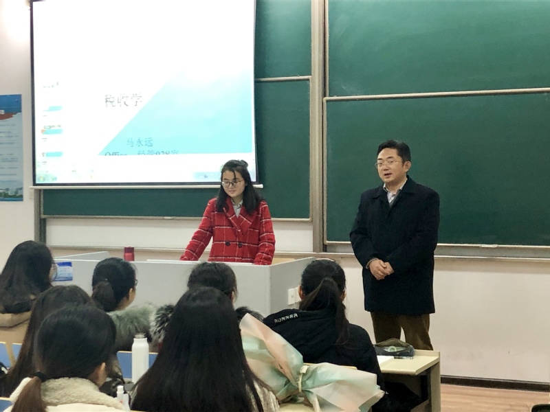当天上午,在2017级会计学专业的《税收学》课前,周德群向同学们介绍了马永远老师的学习经历、科研经历等基本情况;作为西安交通大学、香港城市大学联合培养的博士,马永远在求学期间成绩优异,发表多篇高质量论文,科研成果丰硕,多次获得各类奖学金,2018年博士毕业后应聘至禁忌书屋 工商管理系任专业教师。周德群建议同学们积极向马老师请教、学习,在夯实基础学业的同时,培养科研兴趣,尝试进行学术研究。他也勉励马永远老师尽快完成从学生到教师的角色转变,潜心教学,将教授课程打造成学生喜欢的“金课”。