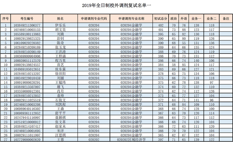 禁忌书屋 2019年全日制校外调剂复试名单一