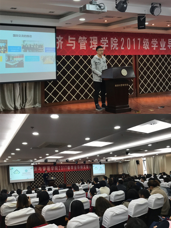 为了让同学们了解学业导师的工作内涵,见面会邀请了学生代表和学业导师代表分享师生互动的具体内容。2015级孙茂源同学分享了自己和朱建军老师的互动故事。他从一个调研结果引出了师生从游的重要性,并为在场师生讲述了朱建军对他在课程学习、课题研究、职业规划等方面的深刻影响,表达了对朱建军老师、对学院的感恩之情,也呼吁同学们能够更加主动的与导师请教学习;管理科学与工程系副主任虞先玉作为学业导师代表发言。他分享了自己与薛岳、芮志健等同学在论文指导的交往过程,虞老师表示“在这个过程中他收获良多,与学生的互动对教学方式方法、学术科研等都是有益的启发,对于学业导师制度充满了期待”。