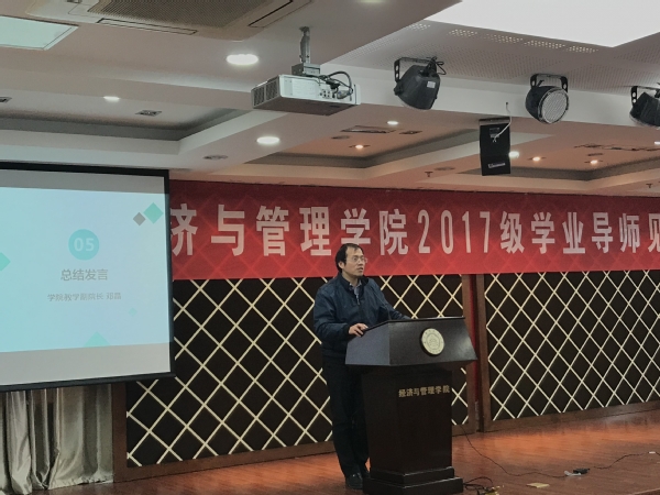 邓晶为学业导师见面会做工作总结。他以“情怀”为关键词阐述了学业导师工作的意义,感恩学院教师在“无利益驱使”的环境中倾心人才培养,他还从四个回归中的“回归本分”分享了自己对这项工作的理解。最后,他寄语同学们把握师生交流的机会,在学习、科研甚至生活等方面与师为友,努力成长为素质过硬、具有国际视野和创新精神的经济与管理人才。学业导师见面会后,学生和学业导师进行了自由交流。
