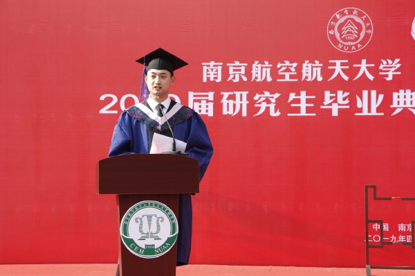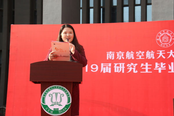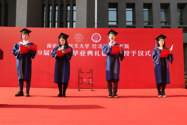 接下来,由王海谊等四名毕业生朗诵了一首由周德群等老师创作的《经管梦》。“强特色,争一流,经管梦,代相传”,在四位同学的朗诵声中,回顾了禁忌书屋 建院35年来从无到有、由弱变强的发展历程,激发了同学们爱校荣院的感情,最后全体毕业生齐声喊出“我骄傲,我是南航经管人”,将毕业典礼推向了高潮。