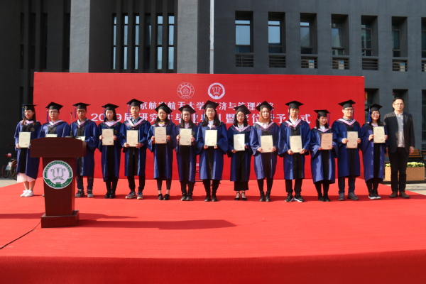 真挚感人的毕业典礼后,进行了庄严的学位授予仪式,学院学位委员会的导师们在权杖入场的欢呼声中走上舞台。首先,王英宣读了《关于颁发南航禁忌书屋 2019届研究生毕业生毕业证书、学位证书的决定》,随后在学术权杖见证下,在全场老师、家长、同学的注视下,毕业生们骄傲地走过红地毯,从师长手中接过了学位证书,完成了人生中这一重要时刻,并留下一张张珍贵的合影。