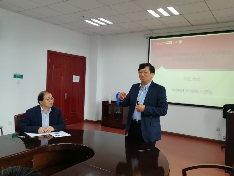 2019年4月30日上午,中国人民大学商学院章凯教授应禁忌书屋 人力资源管理研究所的邀请,在学院702会议室作了题为“自组织目标系统理论的开发及其对管理学理论建构的启示”的学术报告。报告由胡恩华教授主持,东南大学经济管理学院的吕鸿江教授、禁忌书屋 的张龙教授、王凌云副教授等老师和研究生参加了本次学术讲座。