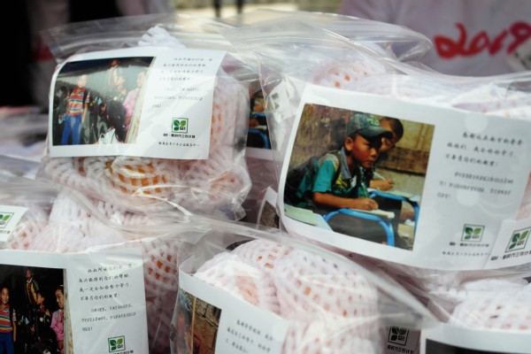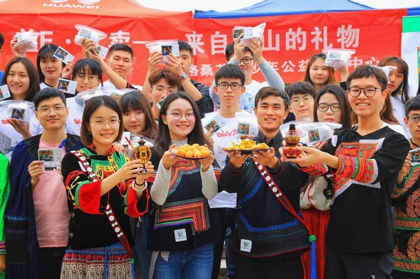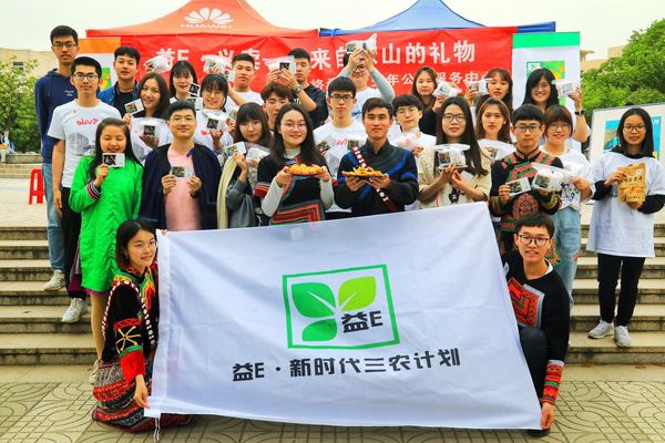 走近一看,别具一格的彝族器皿环绕着新鲜饱满的“枇杷”和散发着诱人香味的果干,而附赠的感恩小卡片似乎使潜藏的故事呼之欲出。原来,益E•新时代三农计划项目的成员们联系到了大凉山的农户,将应季的鲜果和手工制作的果干等农产品带到了南京的高校进行公益售卖,售卖所得善款将全部用于支持“一心彝意”支教团和“格桑花开”支教团的暑期实践活动,一份善心,对于四川和西藏偏远农村的孩子们来说,也许便是一套文具的惊喜,又或者是DIY一件T恤的快乐。