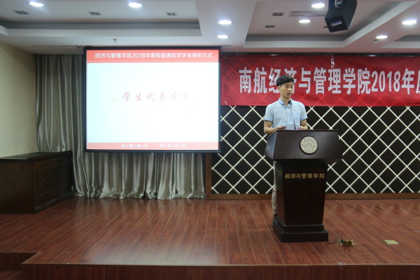 涂志宏宣读了2018年度“极智通信奖学金”表彰名单,随后,与会嘉宾共同为获奖学生颁奖。赵雪、张云涛分别作为本科生、研究生获奖学生代表发言,他们分享了自己在学习科研过程中的点滴经历,感恩学院与企业给予的关心与支持,并表示会怀着感恩之心继续努力拼搏,为学校和社会发展贡献力量。