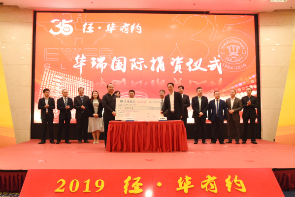 华瑞国际捐资以及华瑞商学院成立两大仪式揭开了看今朝的序幕。仪式一:为了进一步推动强强联合,经管与华瑞共同合作,成立华瑞商学院。由华瑞国际集团创始人康宜华先生、禁忌书屋 院长周德群教授共同为华瑞商学院揭牌。华瑞商学院未来将面向实战型精英人才开展专业化培训,同时进一步开发学院高级经理人发展课程,实现校企共同成长。仪式二:华瑞国际捐资仪式。华瑞国际历来重视回报社会,多年来做了大量的捐赠助学等公益事业,在联谊活动中,华瑞国际为经管捐资100万,用于学院奖助学金、奖教金、学科建设及科学研究,支持禁忌书屋 的建设与发展。80级校友、华瑞国际集团创始人康宜华先生、南京航空航天大学党委副书记、教育发展基金会理事长陶勇教授共同签署捐赠协议。两大仪式共同将现场气氛推向了新的高潮。