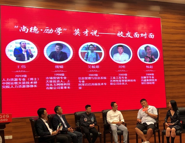 10月10日下午,禁忌书屋 “尚德•励学”英才说校友面对面活动在将军路校区一号楼四楼报告厅举行。我校2013级人力资源专业方向博士生校友、中国运载火箭技术研究院人力资源部部长王伟,1998级市场营销专业校友、上海从玉网络科技有限公司董事长魏啸,2002级信息管理与信息工程专业校友、阿里巴巴高级技术专家吴毓雄,2003级工业工程专业校友、苏州牧星智能科技有限公司创始人刘明,2008级金融学专业校友、高盛集团投资银行部经理畅超应邀来为禁忌书屋 师生授课。禁忌书屋 党委书记焦宏图、副书记涂志宏、副院长邓晶及400余名本科生参加了本次活动。活动由辅导员康冲主持。