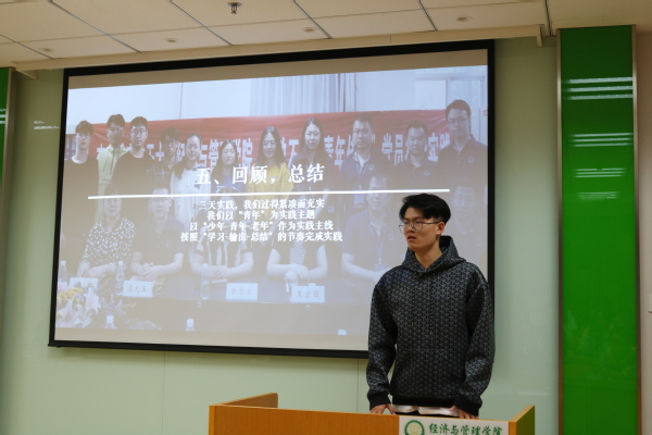 今年暑假学院有两支团队参加了“党旗在实践中闪光”社会实践,在活动的最后,团队成员王康宇、吴一锴等用过程中的影像资料带领同学们重温实践中的点点滴滴。张慧表示,“听了几位同学的分享我深受感动,作为一名共产党员就是要守初心、担使命,在实践中检验真理,我以后也要召集身边的同志一起走向党员实践第一线”。