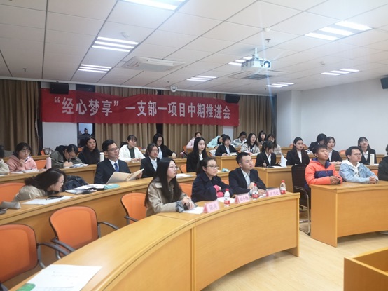 11月21日,“经心梦享”一支部一项目中期推进会在经管院楼辅楼A0302教室成功举办。院团委书记刘小杨,辅导员许乃元,校十佳团支部团支书陈冉以及学院团支书代表共同参与了本次推进会。