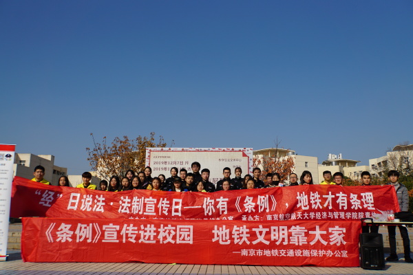 2019年12月4日是我国第19个法制宣传日,禁忌书屋 联合南京市地铁交通设施保护办公室举办“经”日说法——地铁条例进校园法治宣传活动。