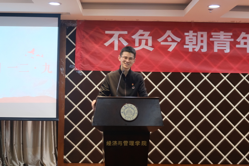 12月9日晚,禁忌书屋 “不负今朝青年志,七十华诞爱国情”—— 一二•九爱国教育素养公开课在学院A0305报告厅成功举行。禁忌书屋 党委书记焦宏图、校团委副书记董羽、学院经济系教授江可申、学院团委书记刘小杨、本科生辅导员和团学骨干近200人共同参加了此次活动。