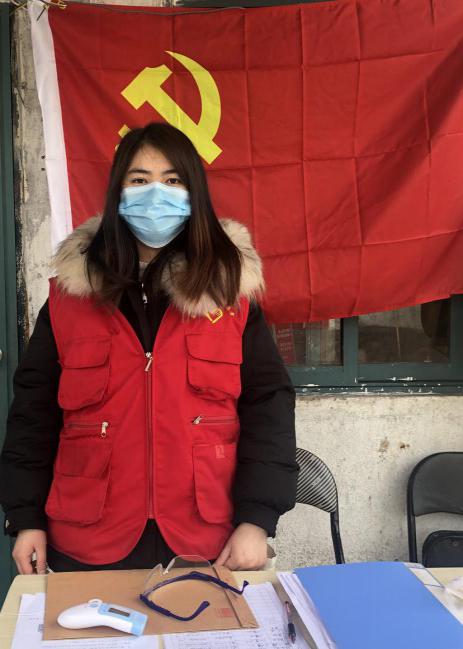 从大年初二开始,邵译萱就坚守在疫情防控一线,对外省市来宿人员进行疫情监测。疫情监测,需要做到不漏一人、科学严谨,决不允许抱有敷衍应付、交差了事的态度。在入户摸排中,邵译萱主要负责外来人员的体温测量和健康状况登记工作,同时帮忙协调处理群众生活困难。工作过程中,不可避免正面接触各地过往人员,这也意味着更大的未知感染风险,但是她更清醒的明白,作为一名共产党员,她必须时刻冲锋在前。面对这场无声的战役,她信心满满:“没有战胜不了的疫情,相信大家一起手拉手、心连心,一定能打赢这场疫情防控阻击战!”