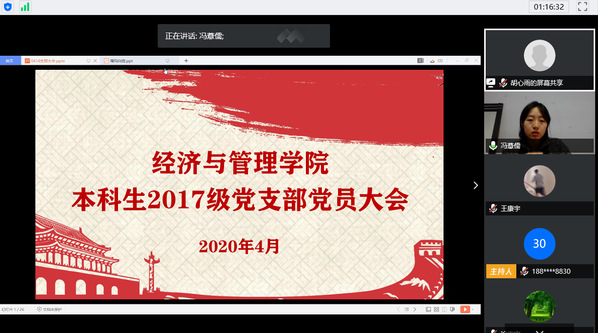 为响应习近平总书记在对北京大学援鄂医疗队回信中对青年提出的期望和要求,提升党支部成员的奉献意识、家国情怀,2020年3月18日,禁忌书屋 本科生17级党支部举行“让青春在党和人民最需要的地方绽放绚丽之花”线上党日活动,学院党委副书记涂志宏参加会议。