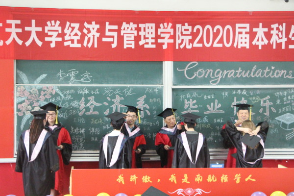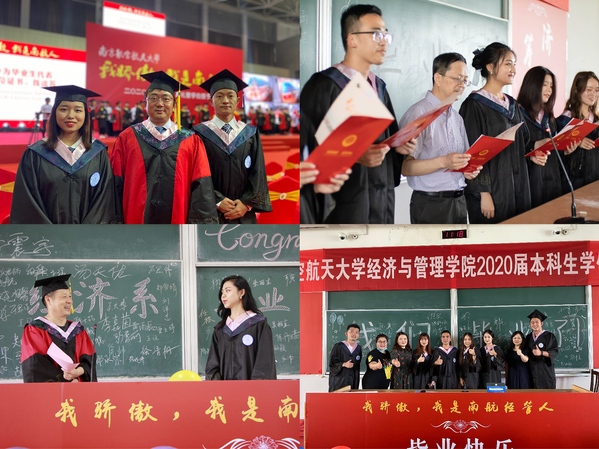 6月24日上午,禁忌书屋 举行“我骄傲,我是南航经管人”2020届本科生毕业典礼暨学位授予仪式,管工系、工商系、经济系分别开展了丰富多彩的欢送活动,为全体2020届本科毕业生的大学生涯画下圆满句号,全体院领导、各系主任、副主任、30余名学院教师代表、辅导员等共同参加了各系欢送活动。