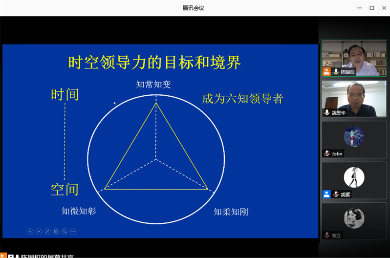 7月5日,清华大学经济管理学院教授陈国权应禁忌书屋 人力资源管理研究所和江苏省人力资源发展研究基地的邀请,在线上为我校师生作了一场“时空领导力”的精彩学术报告。报告由教授胡恩华主持,教授刘思峰、陈万明、冯绍红、年轻教师、博士研究生、硕士研究生等两百余人参加了本次学术讲座。