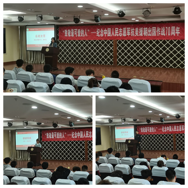 10月23日上午10时,禁忌书屋 2020级团总支“致敬最可爱的人”——纪念中国人民志愿军抗美援朝出国作战70周年素养公开课于A0305顺利举办。活动会场内座无虚席,气氛庄严。
