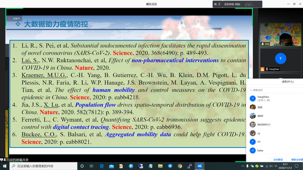 11月12日上午,国防科技大学系统工程学院教授吕欣受禁忌书屋 信息管理与电子商务研究所邀请,在腾讯会议作了题为“大数据技术在应急管理中的前沿应用”的讲座,禁忌书屋 部分教师及研究生共约100人线上参加了吕欣的报告分享,本次学术报告由副教授沈洋主持。