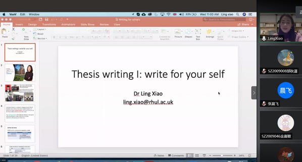 11月4日和11日晚上,伦敦大学皇家霍洛威学院副教授肖玲应经济系邀请,在腾讯会议作了关于英文论文写作的报告。禁忌书屋 副教授陆珩瑱等教师及部分硕、博研究生线上参加了肖玲的报告分享,本次短期课程由副教授陆珩瑱主持。