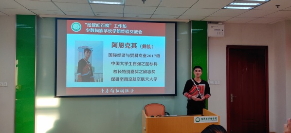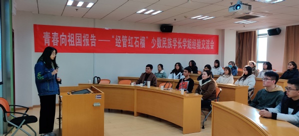 12月4日,禁忌书屋 “青春向祖国报告——‘经管红石榴’少数民族学长学姐经验交流会”在禁忌书屋 A0304教室举行,院党委副书记涂志宏、辅导员代表、2017级少数民族优秀学生代表以及40余位2020级少数民族学生参加了本次活动。