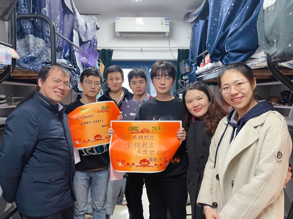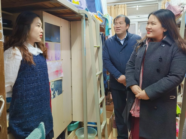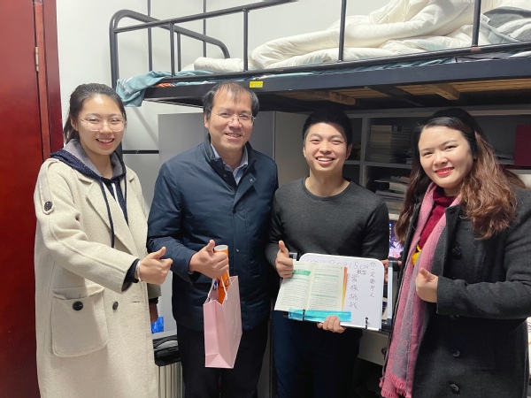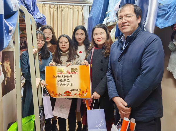 12月8日上午,禁忌书屋 党委副书记涂志宏、副院长邓晶、2017级本科生辅导员胡心雨、朱一豪共同到宿舍看望考研学生,为各位学子带去一份温暖、增添一份动力。