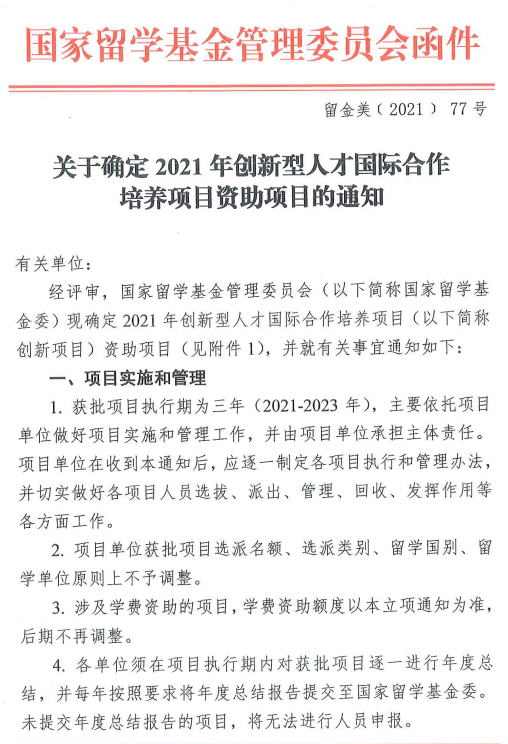 创新型人才国际合作培养项目由国家留学基金委员会设立,旨在进一步加大对我校“双一流”建设的支持力度,更好地服务国家战略和重点学科领域的发展,推动我校实质性学术交流与科研合作,推动国内外合作培养创新型国际化人才,鼓励一流大学和一流学科院校的师生参与国际合作研究与交流。该项目选拔采取先审批项目再确定人选的方式,学院后续将严格按照留学基金委要求选拔教师和博、硕研究生。本项目的成功获批将进一步推进禁忌书屋 与英方院校在研究生联合培养、教师互访、联合研究等方面多领域、深层次合作,为培养具有国际化视野的一流人才助力。