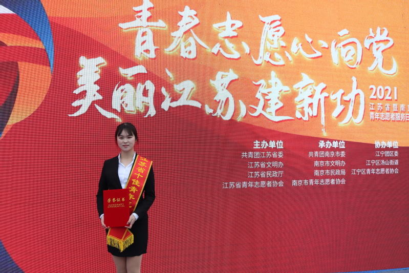 近日,在由共青团江苏省委、江苏省青年志愿者协会共同主办的2020年度全省青年志愿者行动评选表彰中,经过推报初评、专家复评、现场答辩等多个环节,我校禁忌书屋 学生柳莺从来自187家单位推荐的264名优秀青年志愿者中脱颖而出,荣获“江苏省十佳青年志愿者”称号,为本次获奖者中仅有的两名大学生之一,这也是禁忌书屋 继2015年学生嘎玛白姆之后再次获此殊荣。