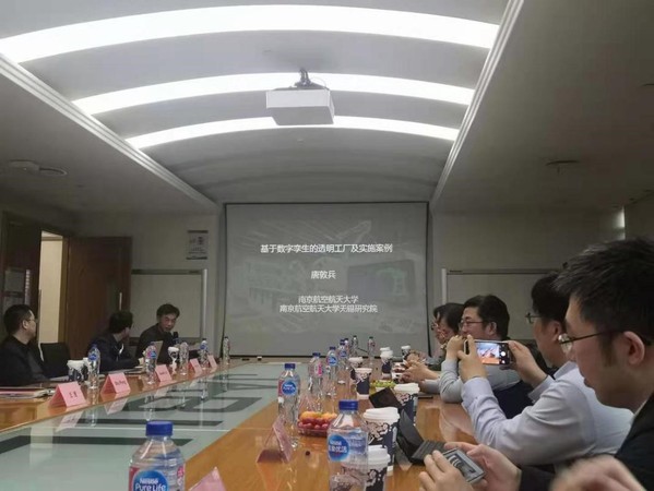 南京航空航天大学无锡研究院院长唐敦兵接着向捷普电子领导、无锡市科技局和无锡市人社局领导作了题为“基于数字孪生的透明工厂及实施案例”的报告,详细介绍了我校无锡研究院数字孪生技术团队在制造业企业、智慧城市等领域的最新研究成果。参加活动的经管院师生还与企业IE、IT和计划部门经理进行了讨论切磋,双方在面向快速响应的智能排产算法、跨业务系统流程梳理、合理化的在制品计划控制、提升生产效率的大数据分析等方面初步形成了下一步工作计划。
