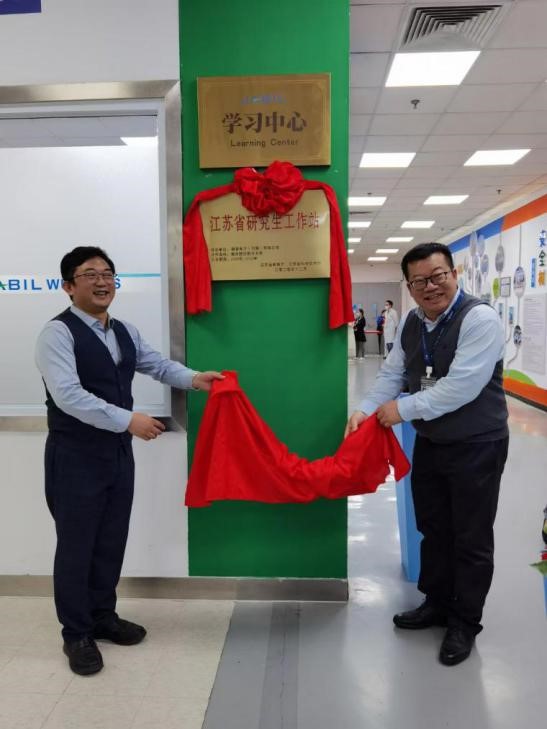 周德群和舒鹏共同为“江苏省研究生工作站”揭牌。这是禁忌书屋 校企合作的第一家研究生工作站,标志着禁忌书屋 与捷普电子(无锡)有限公司在校企协同育人工作平台建设方面迈向了一个新的台阶。