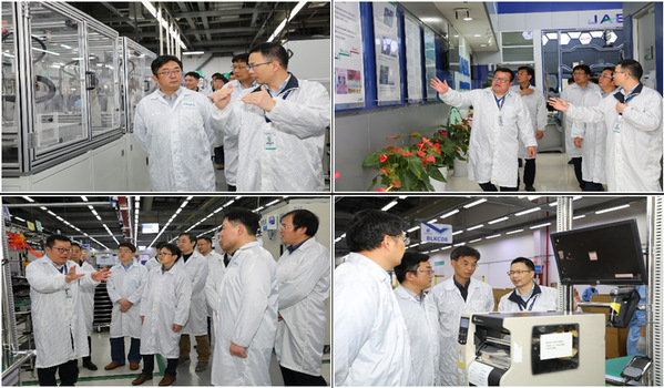 在舒鹏总裁的带领下,周德群、唐敦兵、王澄、王学用等人一同参观了捷普电子(无锡)有限公司的智能化生产线、工厂信息控制中心、和禁忌书屋角。捷普电子(无锡)有限公司总裁舒鹏详细介绍了企业在信息化、智能化生产线和禁忌书屋建设等方面的最新进展。