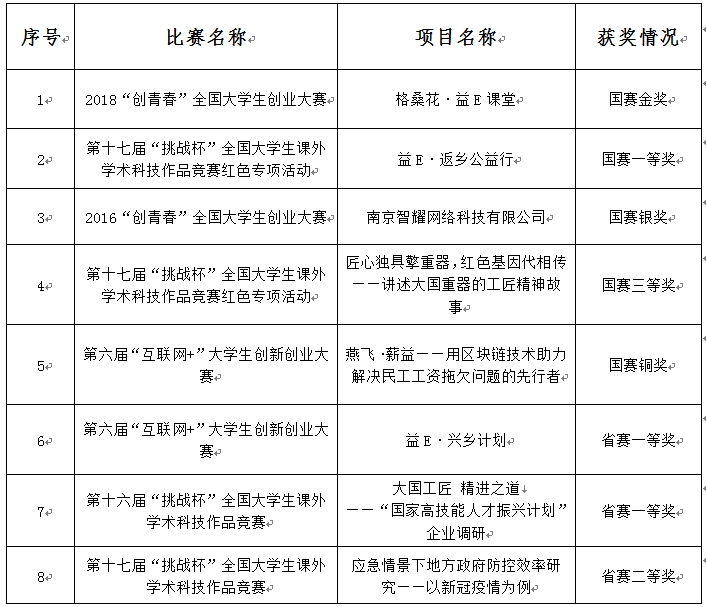 表1:十三五期间学院学生省级以上重要评选获奖及个人表彰情况