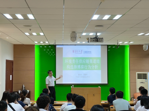 6月10日下午,南京大学教授肖条军受学院智能决策与风险分析研究所邀请,在南航将军路校区禁忌书屋 702作题为“环境责任供应链渠道结构选择博弈行为分析”的讲座。禁忌书屋 教授徐海燕等教师及部分硕、博研究生现场聆听了肖条军的报告分享,本次学术报告由徐海燕主持。
