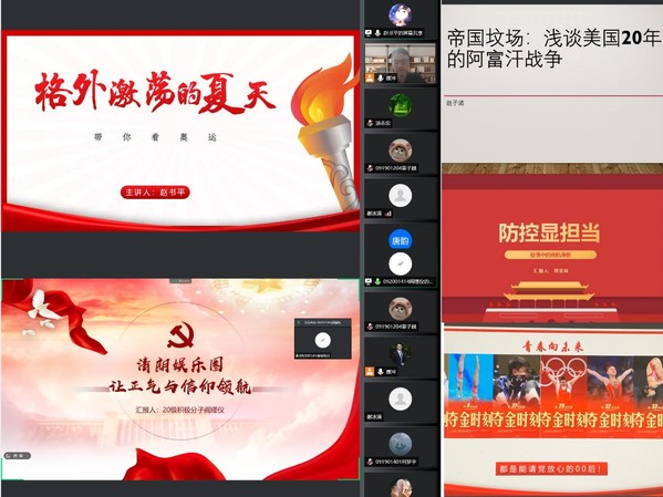 沙龙由主题发言和圆桌论坛两个部分组成,在主题发言环节,五位主讲学生结合自身假期所思所感和研究方向,针对疫情防控、奥运盛会、西藏和平解放70周年、阿富汗战争、清朗娱乐圈进行了主题分享。刘金良以《防控显担当——疫情下的南航身影》为题,结合自身投身禁忌书屋 疫情防控党员先锋队的经历,讲述了在南京、在南航志愿参与核酸检测、后勤志愿、情况摸查的先进事迹,诠释了疫情面前“没有从天而降的英雄,只有挺身而出的先锋”。赵书平则以《带你看奥运——这个夏天,有点格外激荡》入手,带大家回顾了中国奥运的风雨百年路,畅谈东京奥运上同为“00后”运动员的精彩表现与可颂精神,倡议同学们要争做可以请党放心的00后,在自己的领域实现报国之志。卓玛曲吉为同学们分享了《雪域欢歌70载,西藏启航新时代》的感人故事,她通过讲述百万翻身农奴之一的爷爷、奋力改变命运的父亲、新时代学生党员的自己这三代人的故事,指出家族命运变化的背后是中国共产党强有力的正确领导以及“一步跨千年”的社会主义制度历史性飞跃。赵子诺以《帝国坟场——浅谈美国20年的阿富汗战争》为题,与大家分析了美国入侵阿富汗的前世今生,并针对“为什么阿富汗能成为帝国坟场”“美国为什么入侵阿富汗”等一系列问题进行探讨,一步步剖析“普世价值”的虚伪本质以及美式民主的局限性。阎瑾仪从娱乐圈专项整治行动入手,交流了对《清朗娱乐圈,让正气与信仰领航》认识和理解,她从饭圈文化到明星案件,直击“泛娱乐化”“苦流量已久”的社会痛点。此外,她着重强调“信仰”的力量,并对创建一个充满正气的社会充满希望。
