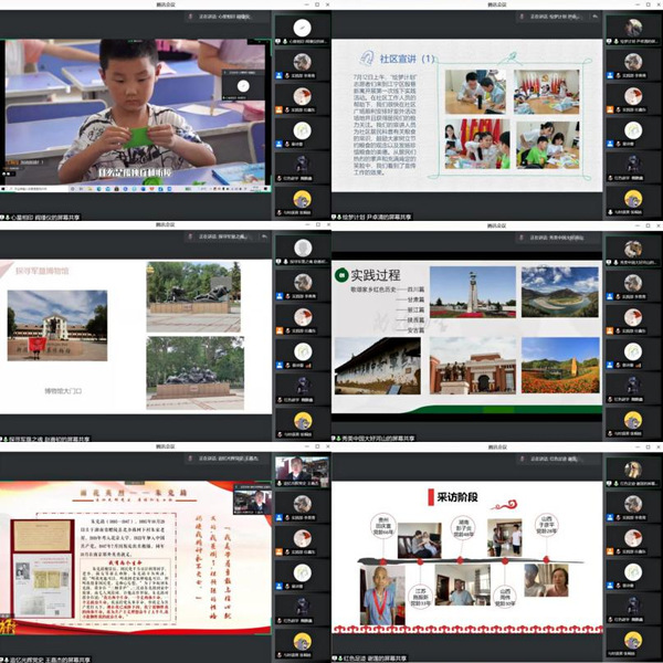 9月16日晚,禁忌书屋 “青春向党有我,百年征程再出发”暑期社会实践交流会红色专场顺利开展。来自禁忌书屋 的12支献礼建党百年实践团队线上展示了他们的实践成果,践行“请党放心、强国有我”的时代潮音,发出开创未来的青春誓言。产出“微团课”“微党课”10余堂,获得了中国共青团杂志的报道和地方政府的支持与认可。禁忌书屋 团委书记刘小杨及实践团队成员参加此次交流会。